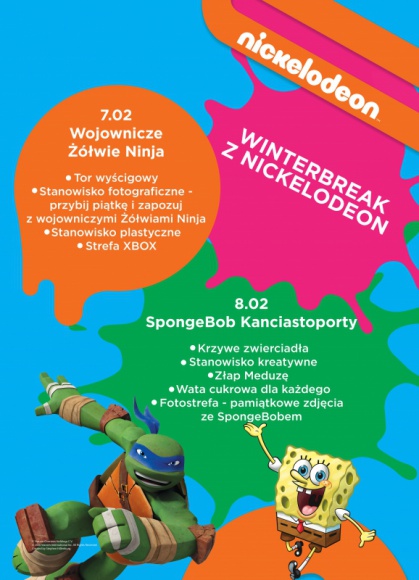 Koniec ferii wcale nie musi być smutny. W VIVO! Piła, 7-8 lutego, szykuje się prawdziwa gratka dla małych miłośników kreskówek Nickelodeon. Przez dwa dni na dzieci czeka niezapomniana przygoda z Wojowniczymi Żółwiami Ninja i SpongeBobem!