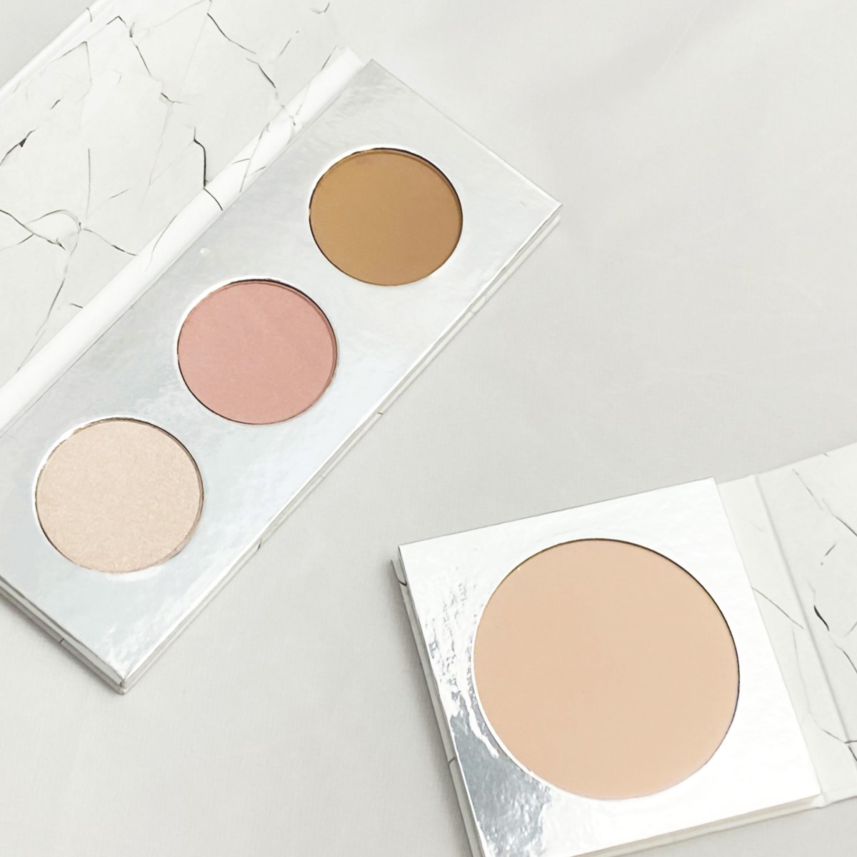 Nanosimy na skórę puder IUNO Cosmetics w dwóch odcieniach – jeden harmonizujący z karnacją i drugi jaśniejszy w okolicach oczu, zdjęcie nr 2