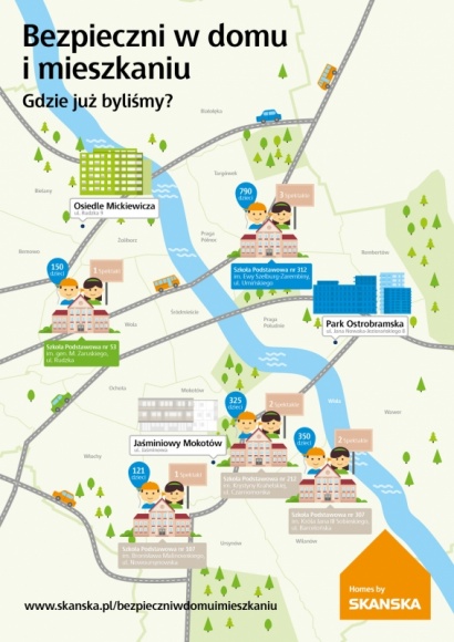Spotkania w ramach kampanii „Bezpieczni w domu i mieszkaniu” organizowane są w szkołach podstawowych zlokalizowanych w pobliżu inwestycji mieszkaniowych Skanska Residential Development Poland w Warszawie. Tym razem bohaterowie przedstawienia zawitali na Mokotowie, gdzie Skanska realizuje swój nowy projekt – osiedle Jaśminowy Mokotów.
